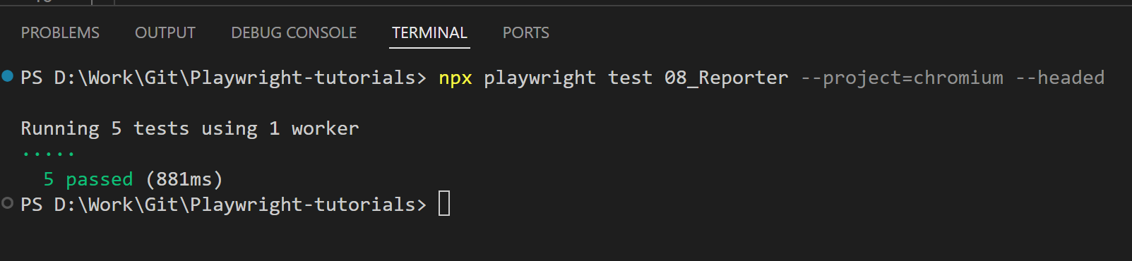 - npx playwright test --headed --> Runs the tests in headed mode.